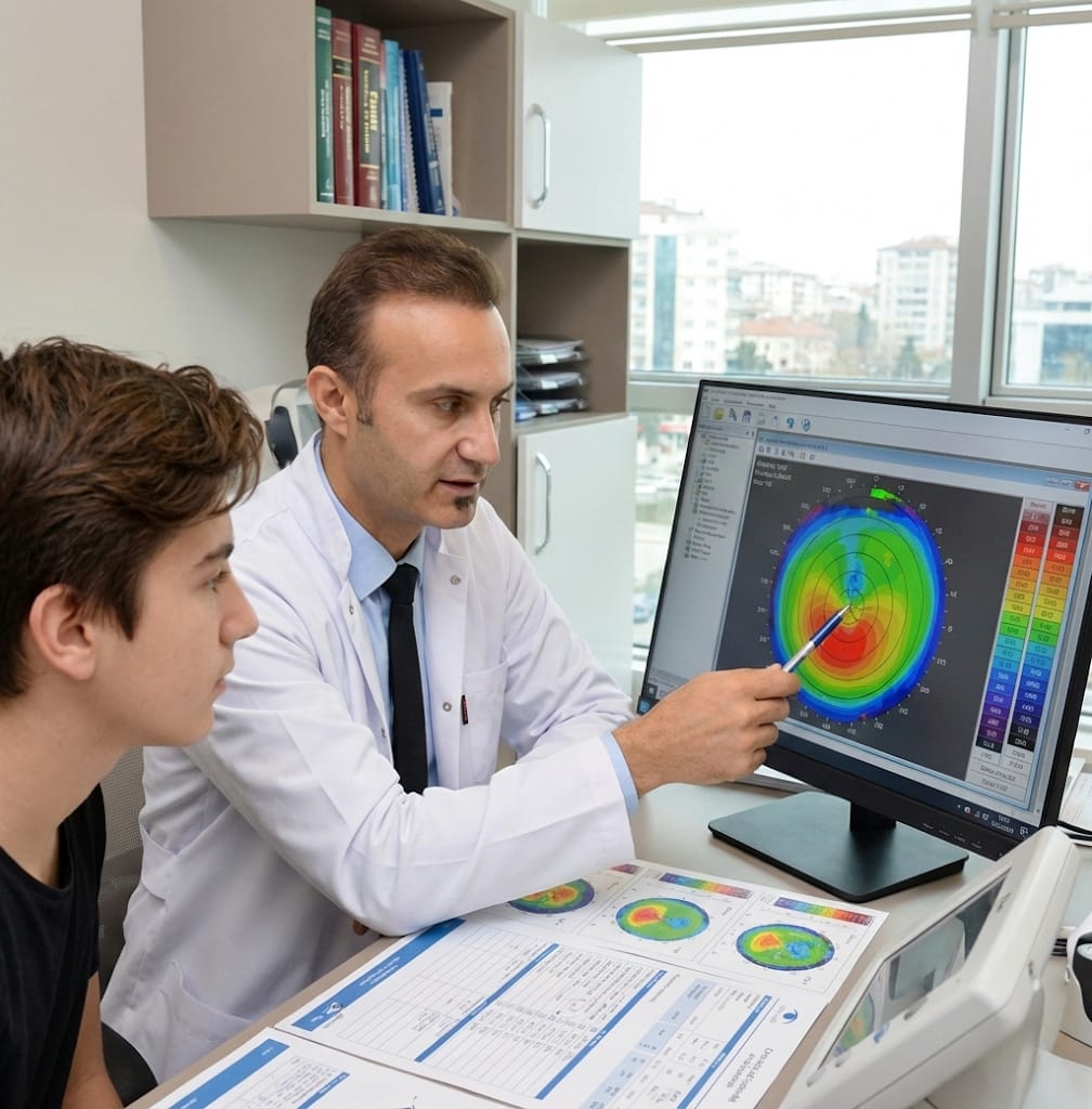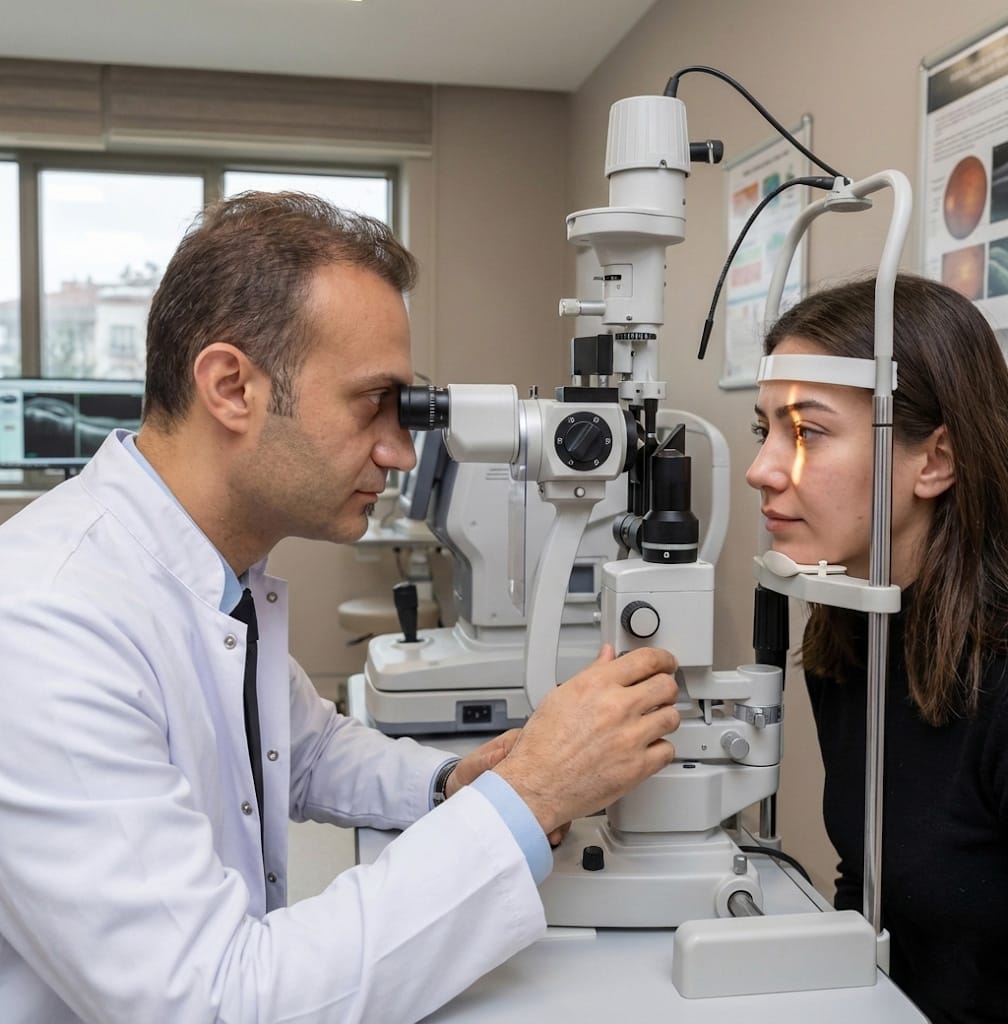 Hastanın göz sağlığı genel bir değerlendirme ile başlar. Bu aşamada, gözün genel durumu incelenir ve olası problemler tespit edilir.